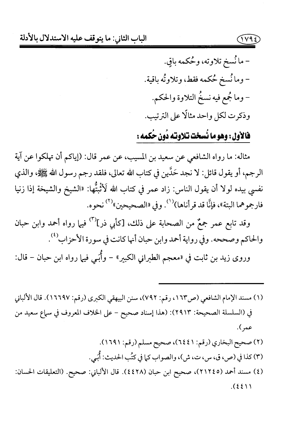 - وما نُسخ حُكمه فقط، وتلاوتُه باقية.