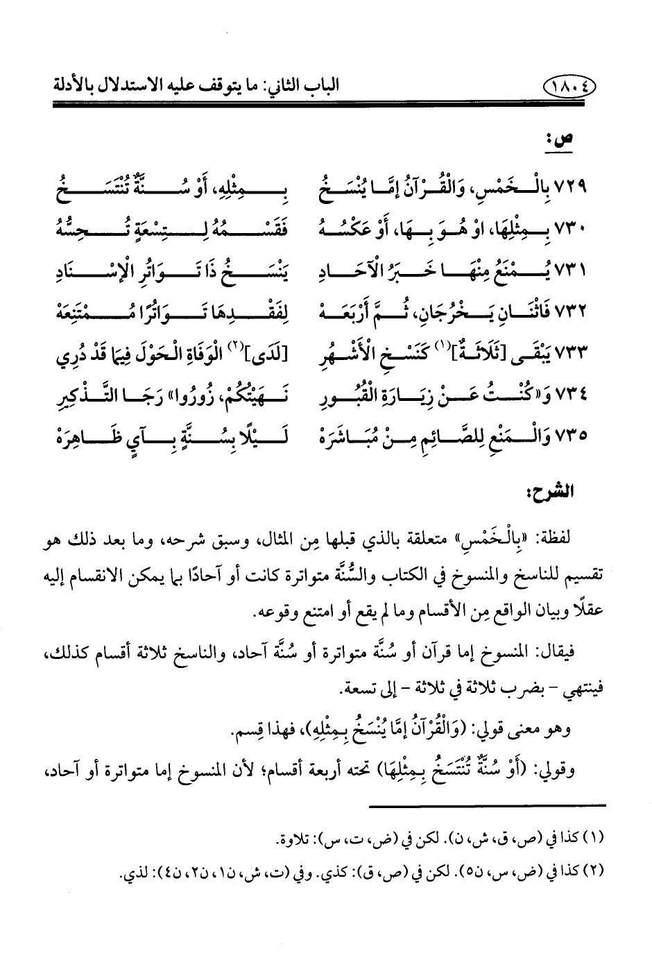 ٧٢٩ - بِالْخَمْسِ، وَالْقُرْآنُ إمَّا يُنْسَخُ ... بِمِثْلِهِ، أَوْ سُنّةٌ تُنْتَسَخ