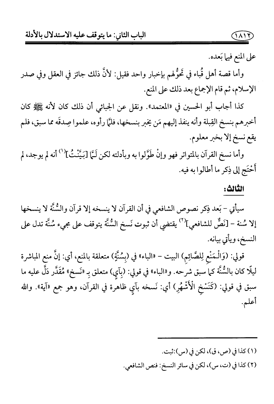 (¬٢) كذا في (ت، س)، لكن في سائر النسخ: فنص الشافعي.