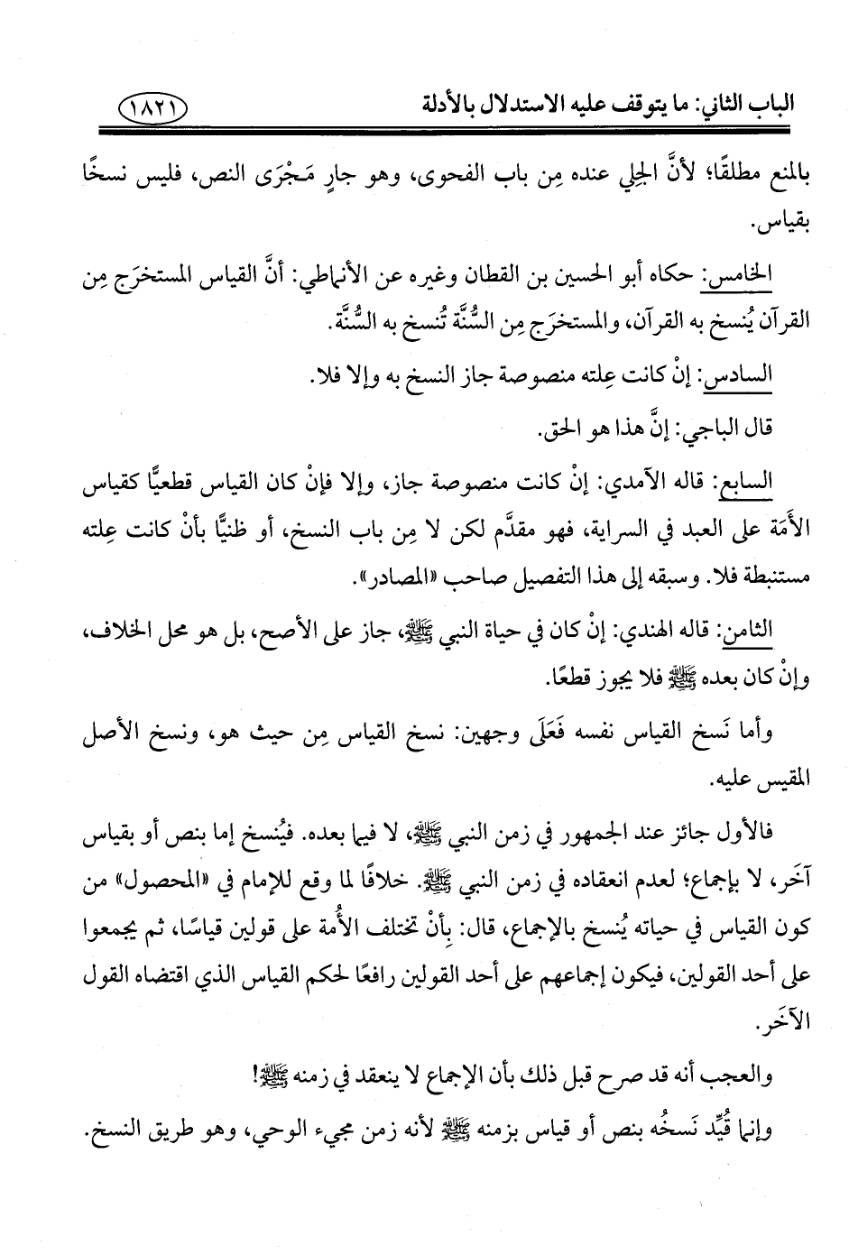 الخامس: حكاه أبو الحسين بن القطان وغيره عن الأنماطي: أنَّ القياس المستخرَج مِن القرآن يُنسخ به القرآن، والمستخرَج مِن السُّنَّة تُنسخ به السُّنَّة.