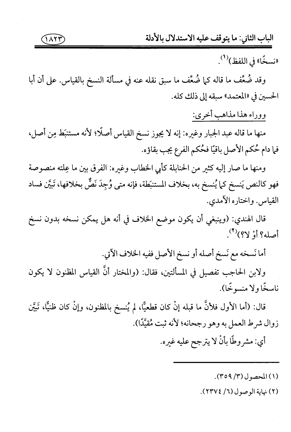 قال الهندي: (وينبغي أن يكون موضع الخلاف في أنه هل يمكن نسخه بدون نسخ أصله؟ أوْ لا؟ ) (¬٢).