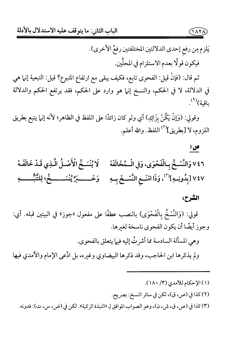 ٧٤٦ - وَالنَّسْخُ بِالْفَحْوَى، وَفي الْمُخَالَفَهْ ... لَا يُنْسَخُ الْأَصْلُ الَّذِي قَدْ خَالَفَهْ