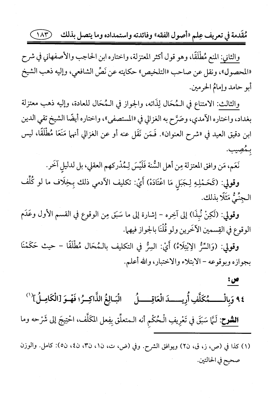 ٩٤ - وَبِالْمُكَلَّفِ أُرِيدَ الْعَاقِلُ ... الْبَالِغُ الذَّاكِرُ، فَهْوَ [الْكَامِلُ] (¬١)