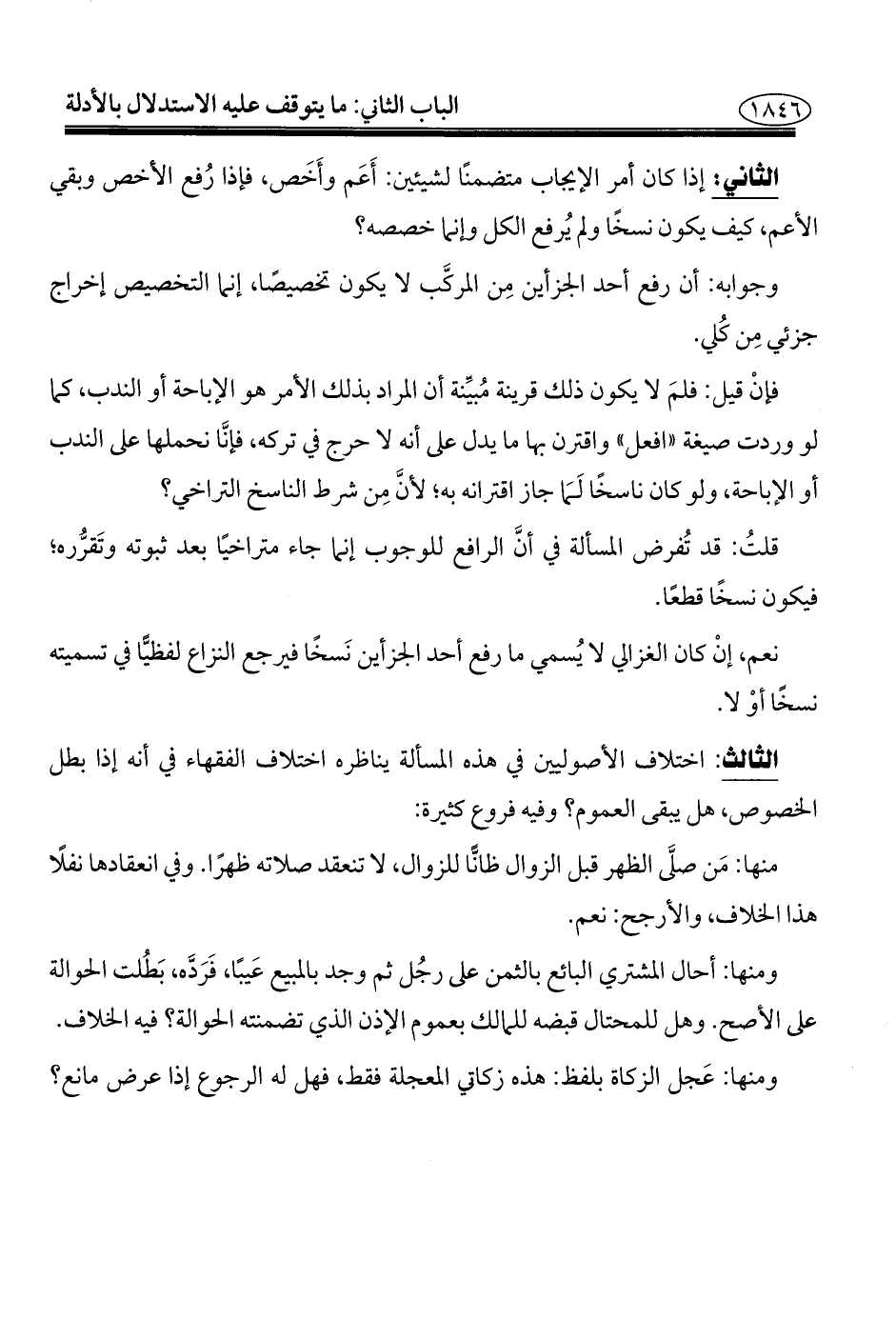 الثاني: إذا كان أمر الإيجاب متضمنًا لشيئين: أَعَم وأَخَص، فإذا رُفع الأخص وبقي الأعم، كيف يكون نسخًا ولم يُرفع الكل وإنما خصصه؟