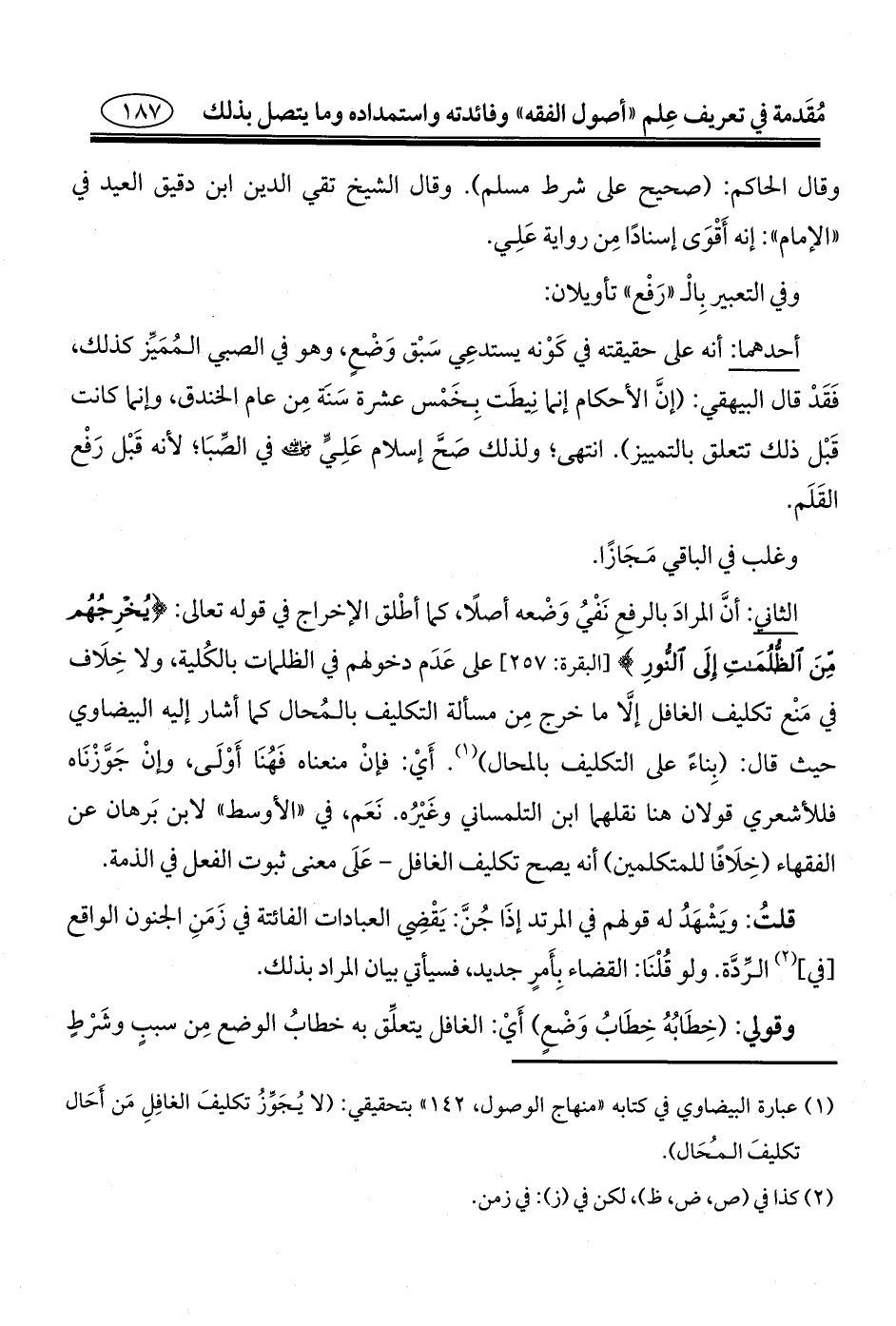 (¬١) عبارة البيضاوي في كتابه "منهاج الوصول، ١٤٢" بتحقيقي: (لا يُجَوِّزُ تكليفَ الغافِلِ مَن أَحَال تكليفَ المُحَال).