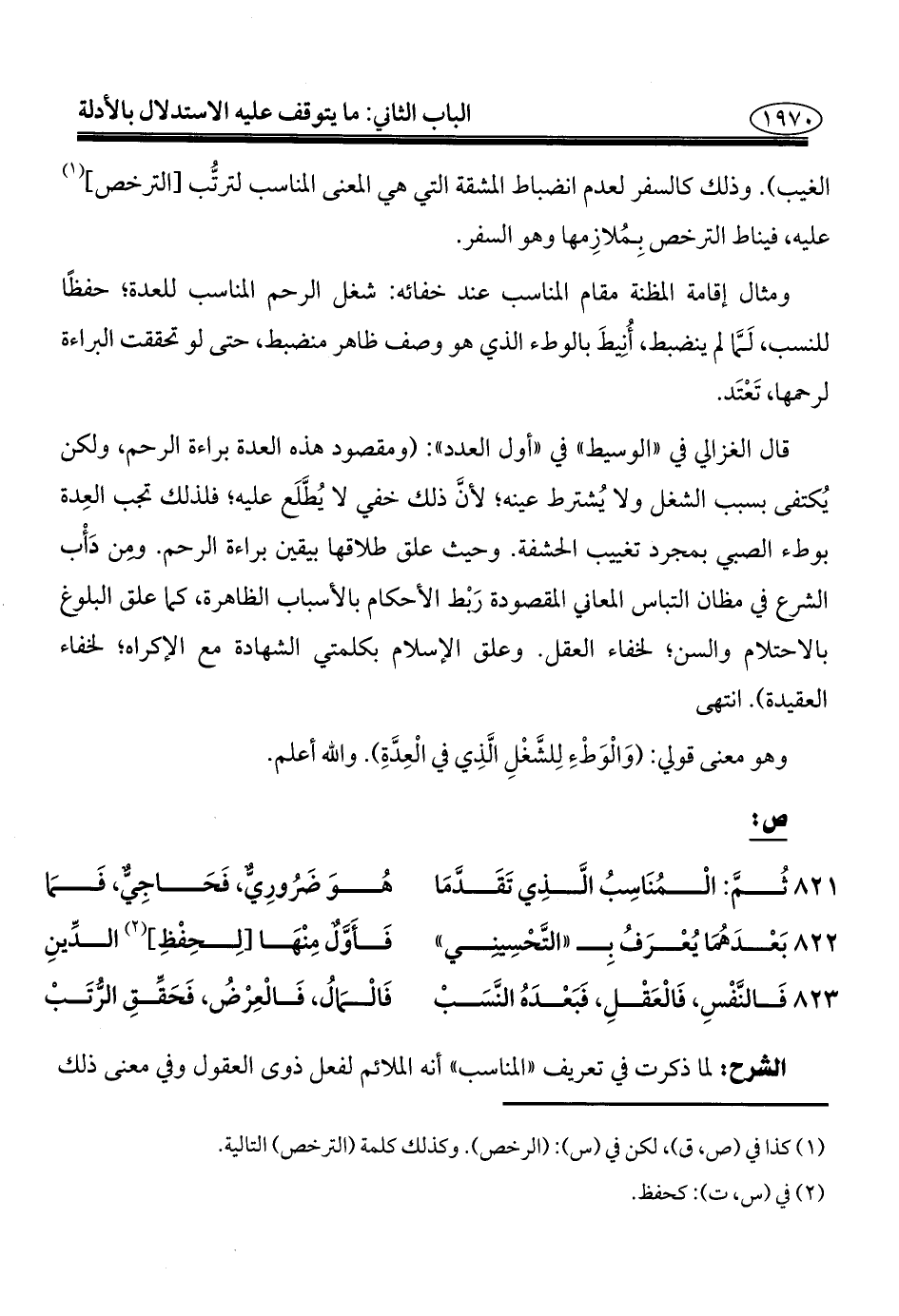 ٨٢١ - ثُمَّ: الْمُنَاسِبُ الَّذِي تَقَدَّمَا ... هُوَ ضَرُورِيٌّ، فَحَاجِيٌّ، فَمَا