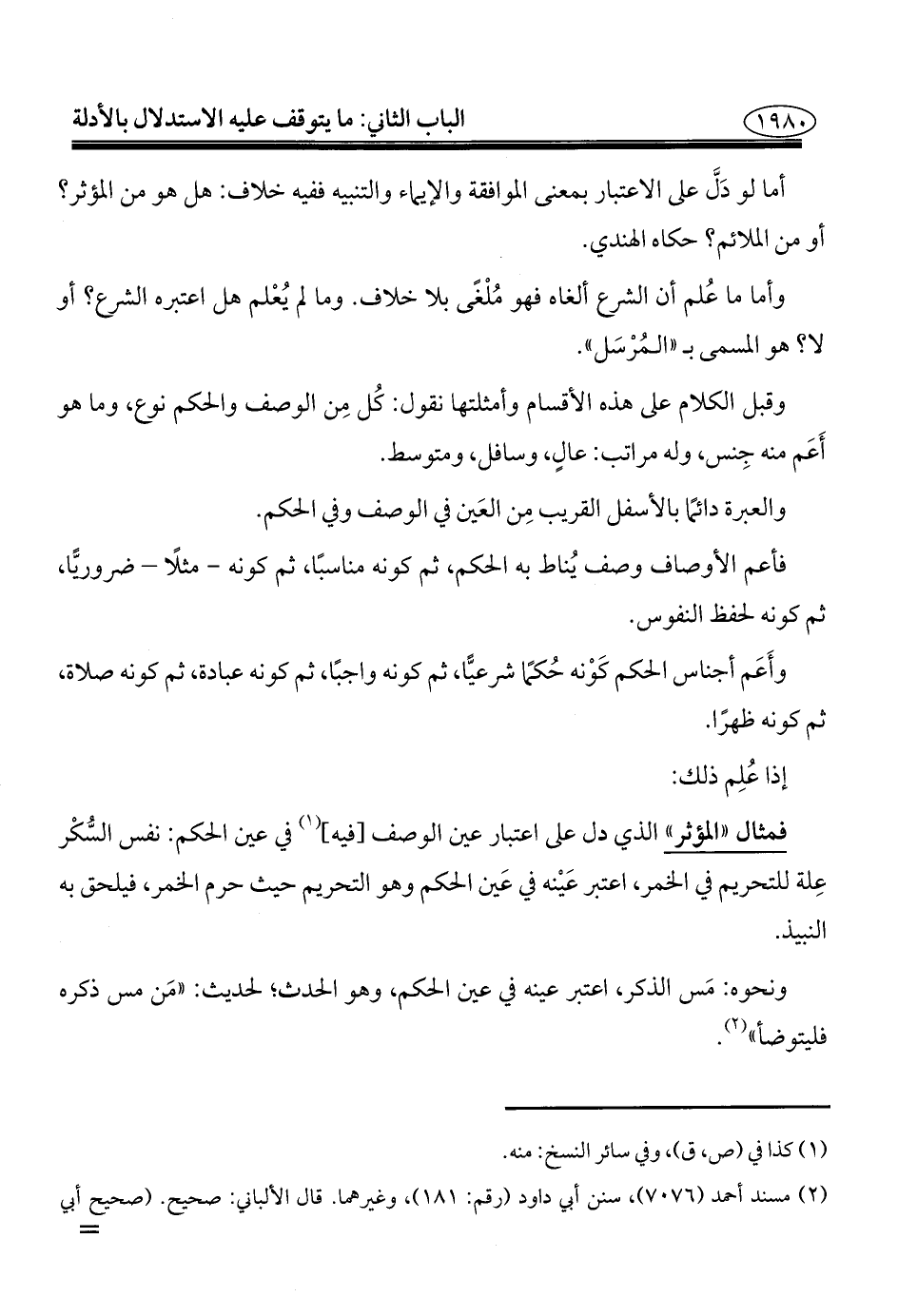 وقبل الكلام على هذه الأقسام وأمثلتها نقول: كُل مِن الوصف والحكم نوع، وما هو أَعَم منه جِنس، وله مراتب: عالٍ، وسافل، ومتوسط.