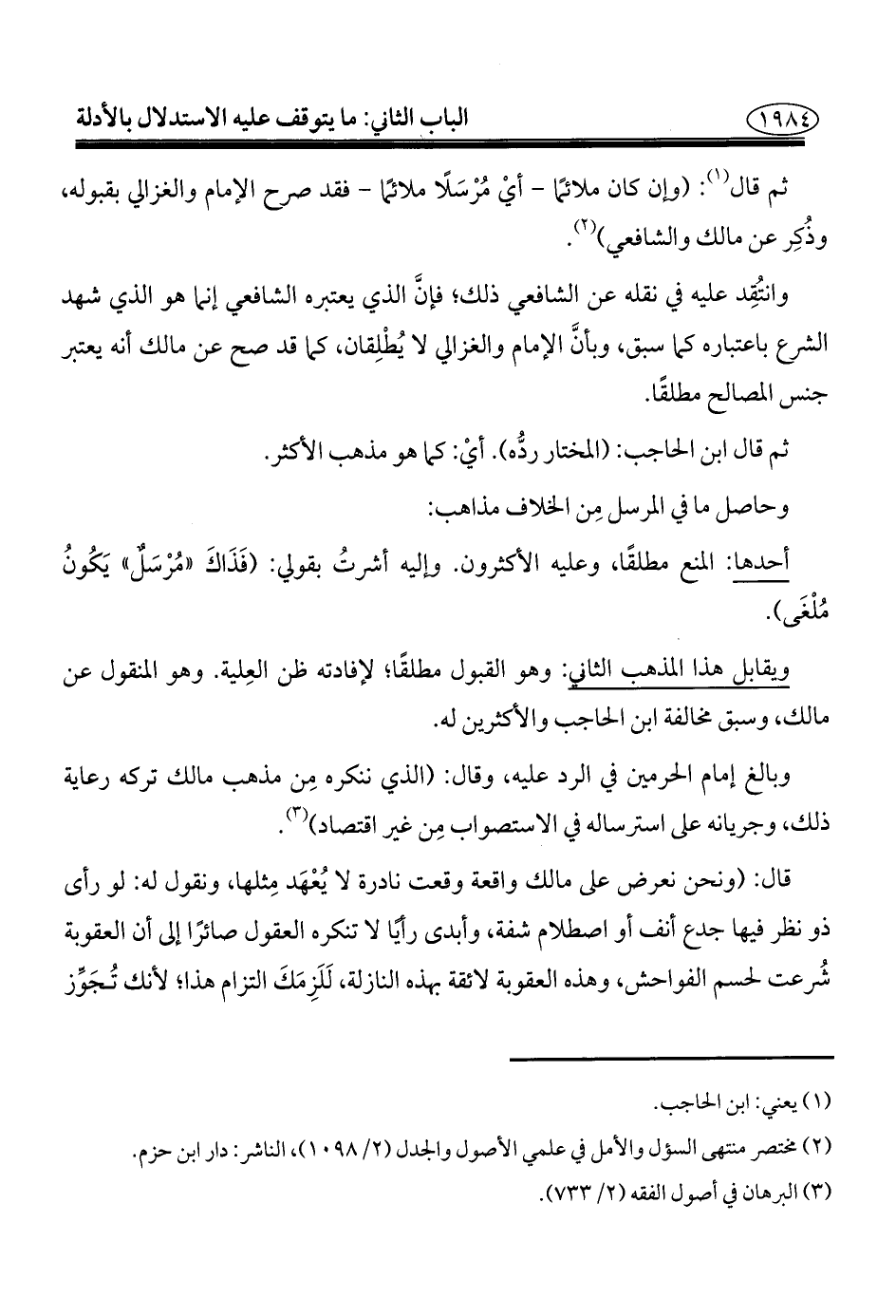 (¬٢) مختصر منتهى السؤل والأمل في علمي الأصول والجدل (٢/ ١٠٩٨)، الناشر: دار ابن حزم.