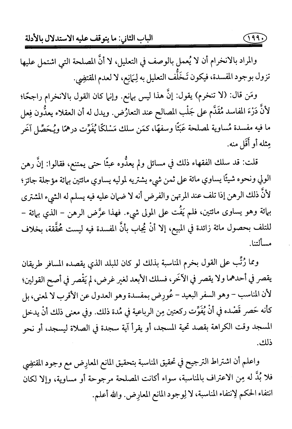 واعلم أن اشتراط الترجيح في تحقيق المناسبة بتحقيق المانع المعارِض مع وجود المقتضِي فلا بُدَّ له مِن الاعتراف بالمناسبة، سواء أكانت المصلحة مرجوحة أو مساوية، وإلا لكان انتفاء الحكم لِانتفاء المناسبة، لا لِوجود المانع المعارِض. والله أعلم.
