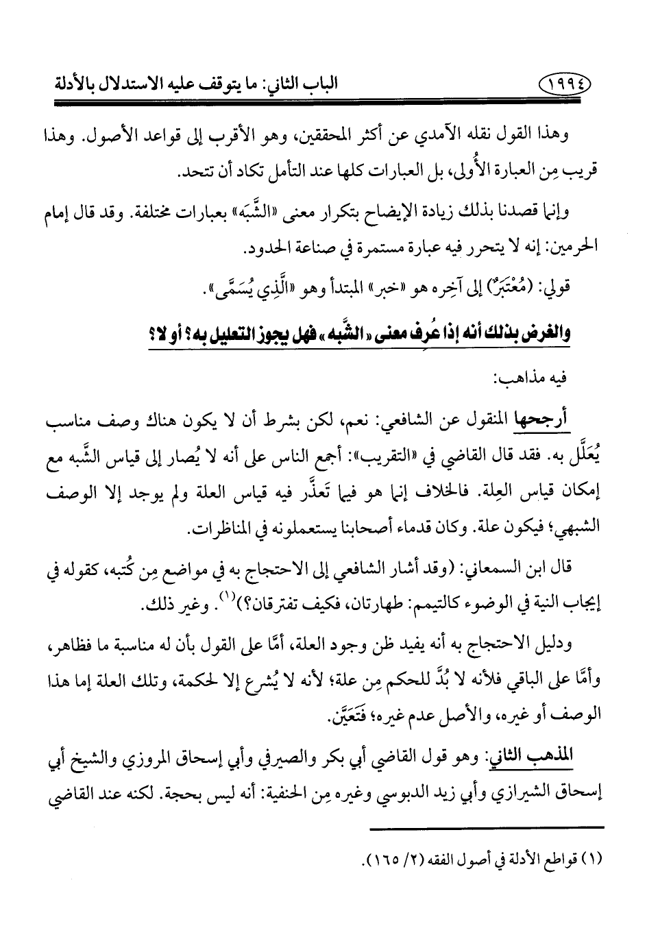 وإنما قصدنا بذلك زيادة الإيضاح بتكرار معنى "الشَّبَه" بعبارات مختلفة. وقد قال إمام الحرمين: إنه لا يتحرر فيه عبارة مستمرة في صناعة الحدود.
