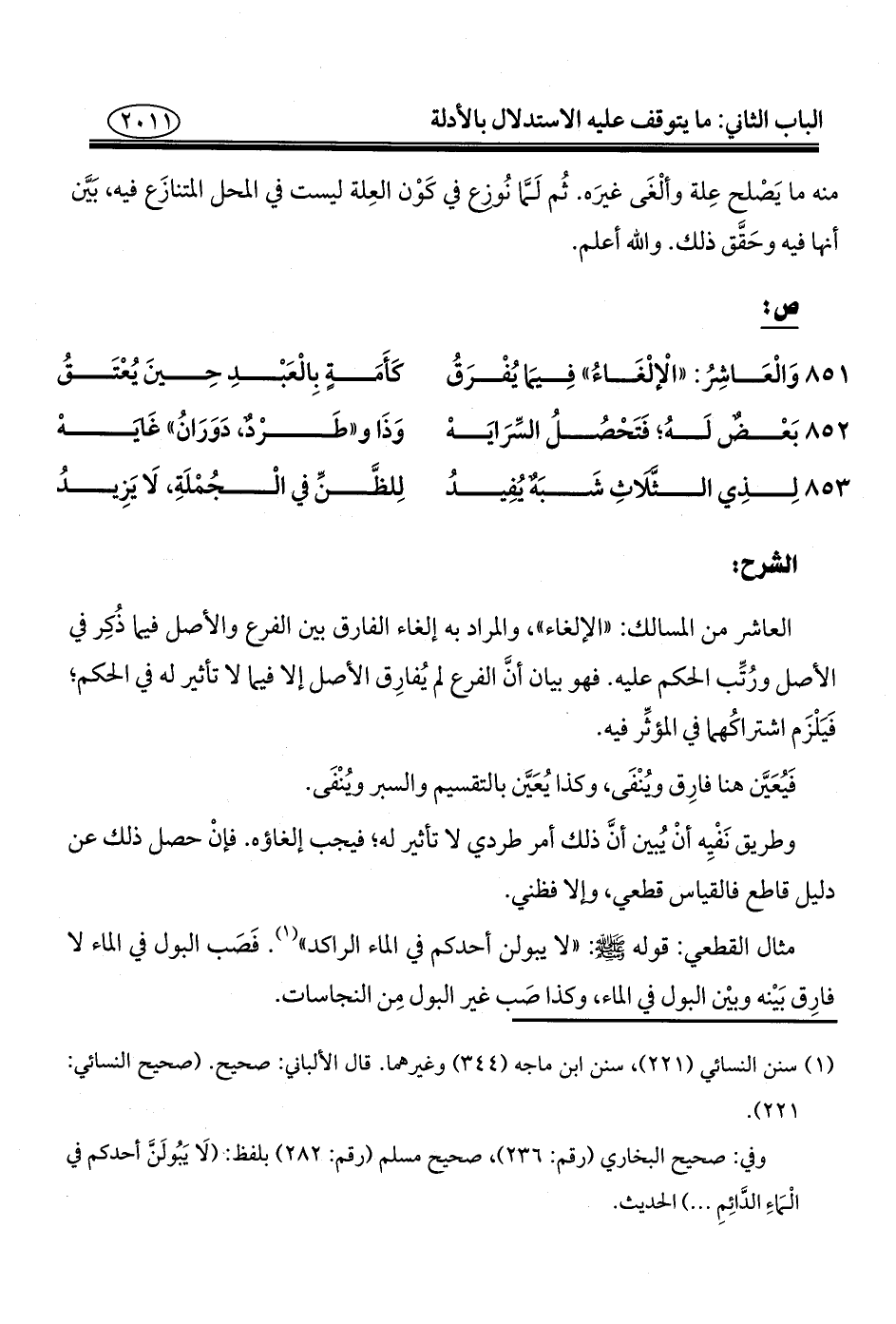 ٨٥١ - وَالْعَاشِرُ: "الْإلْغَاءُ" فِيمَا يُفْرَقُ ... كَأَمَةٍ بِالْعَبْدِ حِينَ يُعْتَقُ