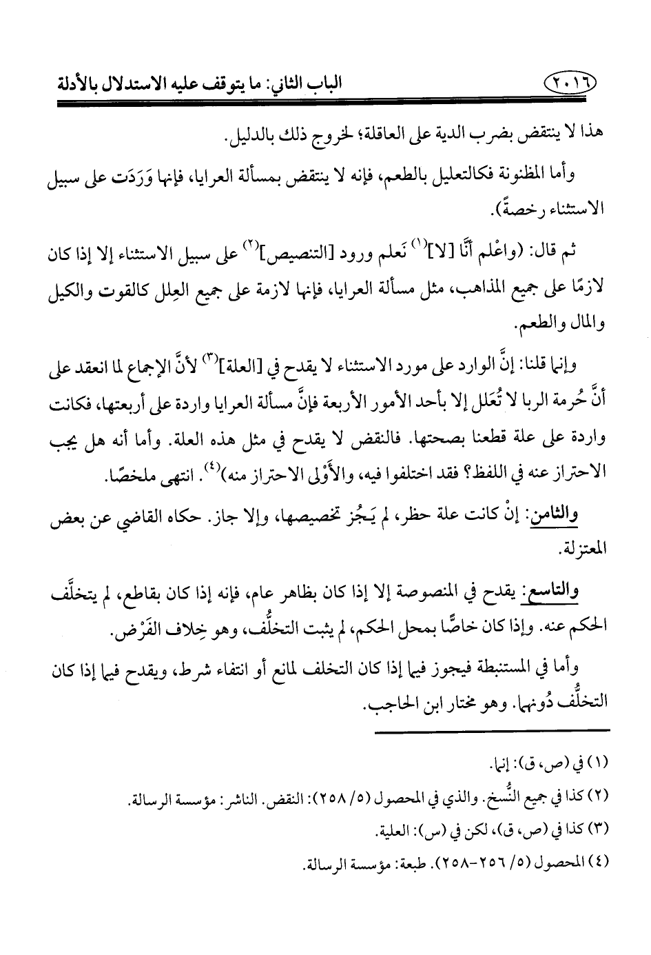 (¬٤) المحصول (٥/ ٢٥٦ - ٢٥٨). طبعة: مؤسسة الرسالة.