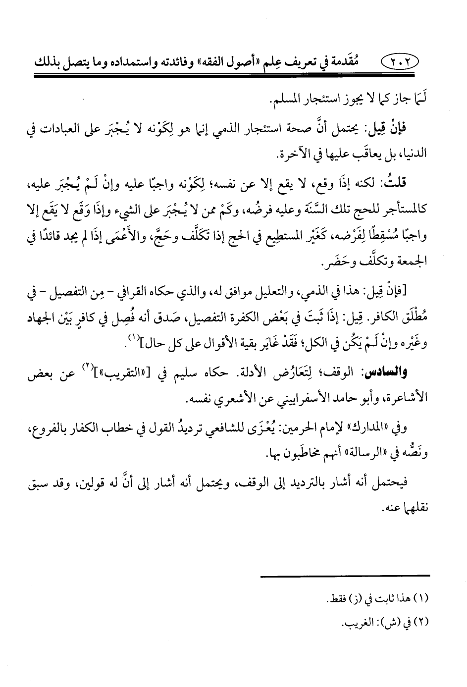 [فإنْ قِيل: هذا في الذمي، والتعليل موافق له، والذي حكاه القرافي - مِن التفصيل - في مُطْلَق الكافر. قِيل: إذَا ثَبتَ في بَعْض الكفرة التفصيل، صَدق أنه فُصِل في كافرٍ بَيْن الجهاد وغَيْره وإنْ لَمْ يَكُن في الكل؛ فَقَدْ غَايَر بقية الأقوال على كل حال] (¬١).