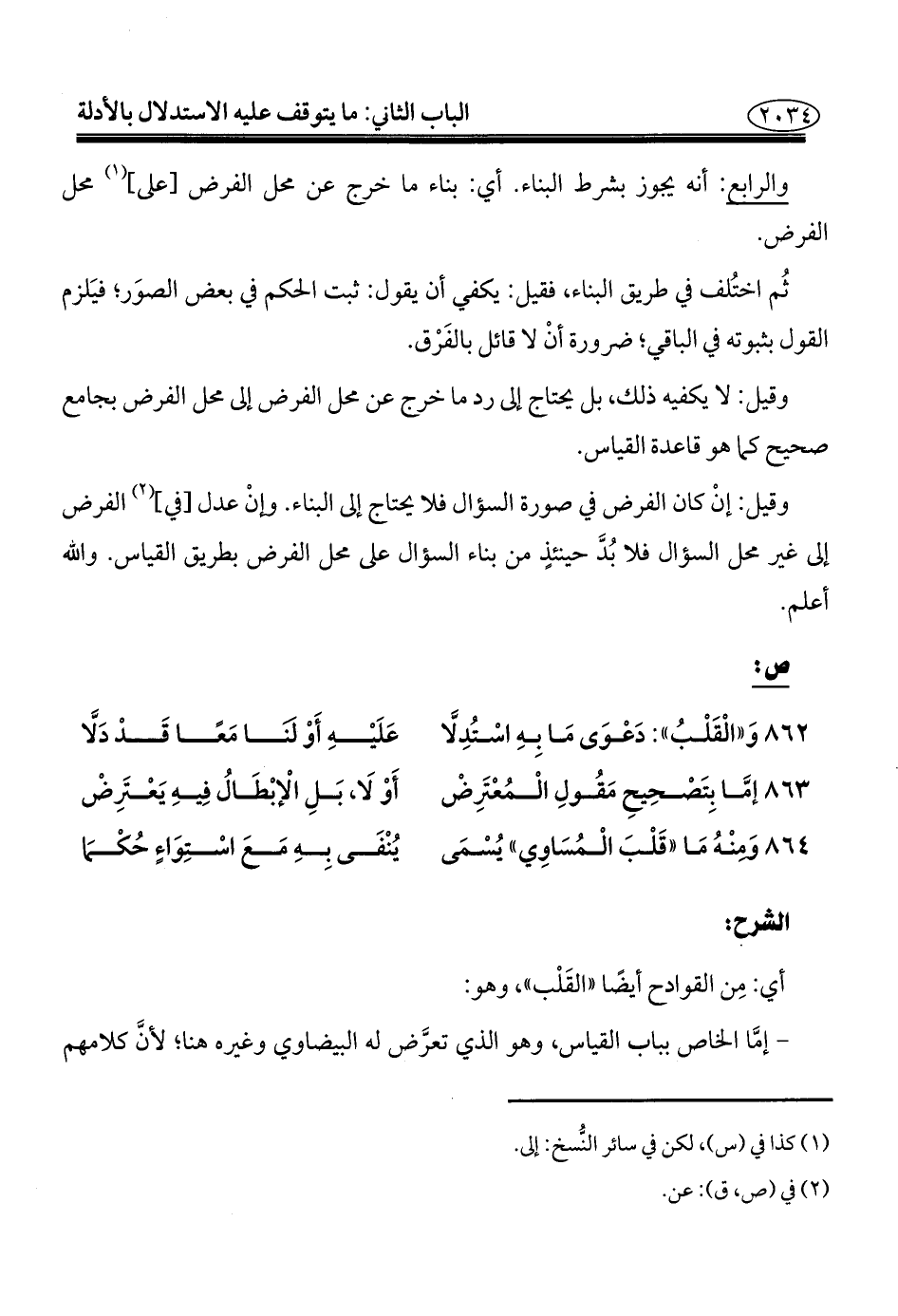 ٨٦٢ - وَ"الْقَلْبُ": دَعْوَى مَا بِهِ اسْتُدِلَّا ... عَلَيْهِ أَوْ لنَا مَعًا قَدْ دَلَّا