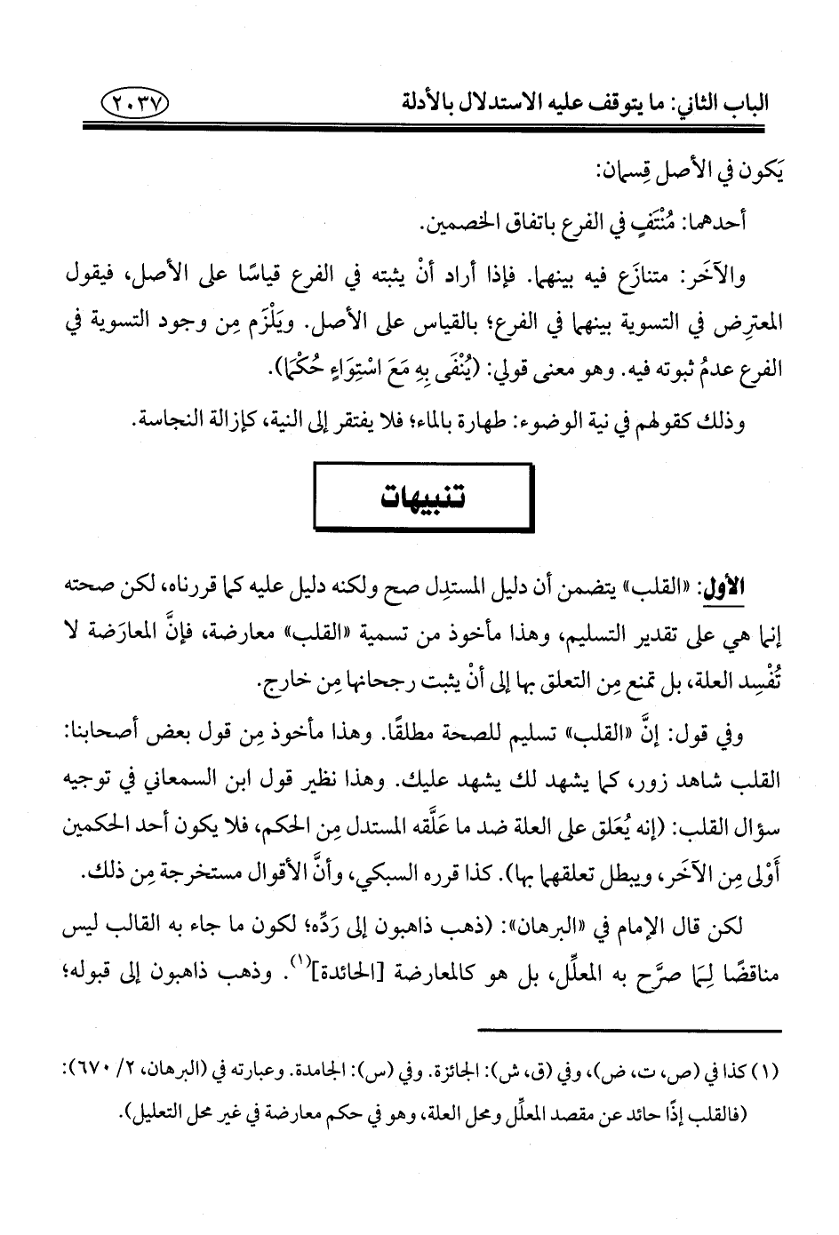 (¬١) كذا في (ص، ت، ض)، وفي (ق، ش): الجائزة. وفي (س): الجامدة. وعبارته في (البرهان، ٢/ ٦٧٠): (فالقلب إذًا حائد عن مقصد المعلِّل ومحل العلة، وهو في حكم معارضة في غير محل التعليل).