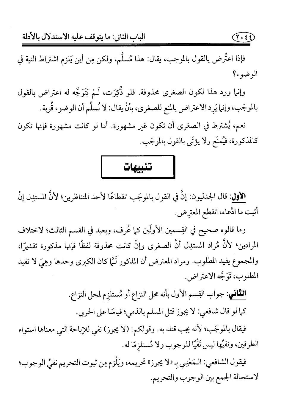 فإذا اعتُرض بالقول بالموجب، يقال: هذا مُسلَّم، ولكن مِن أين يَلزم اشتراط النية في الوضوء؟