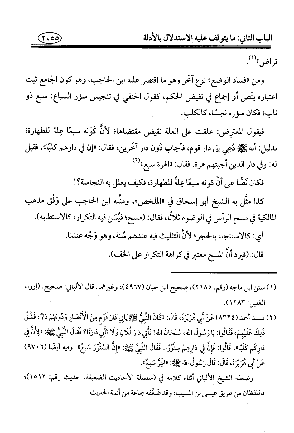 فكان نَصًّا على أنَّ كونه سبعًا عِلةٌ للطهارة، فكيف يعلل به النجاسة؟ !