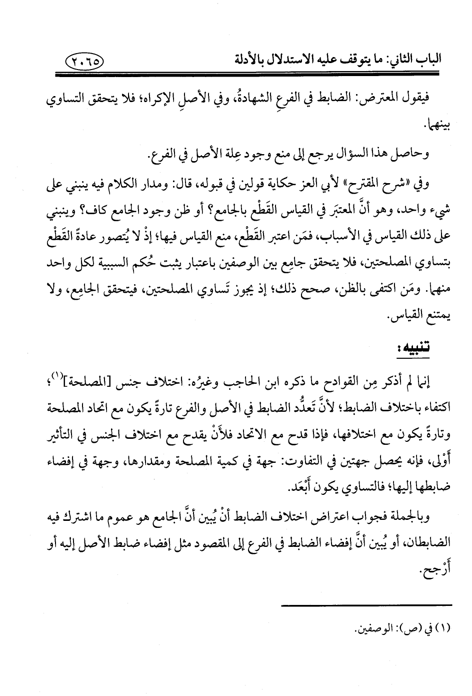 إنما لم أذكر مِن القوادح ما ذكره ابن الحاجب وغيرُه: اختلاف جنس [المصلحة] (¬١)؛ اكتفاء باختلاف الضابط؛ لأنَّ تَعدُّد الضابط في الأصل والفرع تارةً يكون مع اتحاد المصلحة وتارةً يكون مع اختلافها، فإذا قدح مع الاتحاد فلأَنْ يقدح مع اختلاف الجنس في التأثير أَوْلى، فإنه يحصل جهتين في التفاوت: جهة في كمية المصلحة ومقدارها، وجهة في إفضاء ضابطها إليها؛ فالتساوي يكون أَبْعَد.