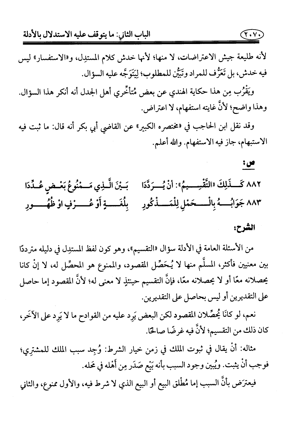 ٨٨٢ - كَذَلِكَ "التَّقْسِيمُ": أنْ يُرَدَّدَا ... بَيْنَ الَّذِي مَمْنُوعُ بَعْضٍ عُدِّدَا