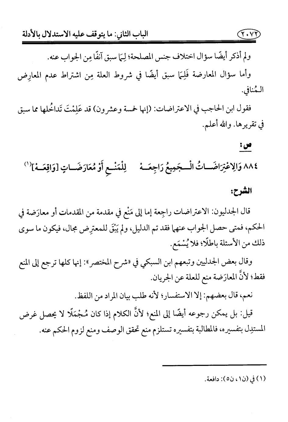 ٨٨٤ - وَالِاعْتِرَاضَاتُ الْجَمِيعُ رَاجِعَهْ ... لِلْمَنْعِ أَوْ مُعَارَضَاتٍ [وَاقِعَهْ] (¬١)