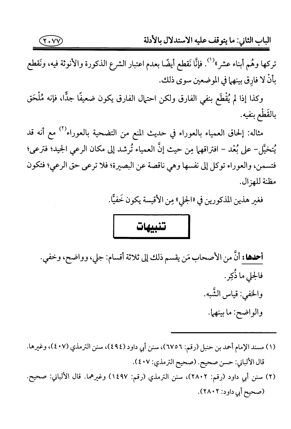 أحدها: أنَّ من الأصحاب مَن يقسم ذلك إلى ثلاثة أقسام: جلي، وواضح، وخفي.
