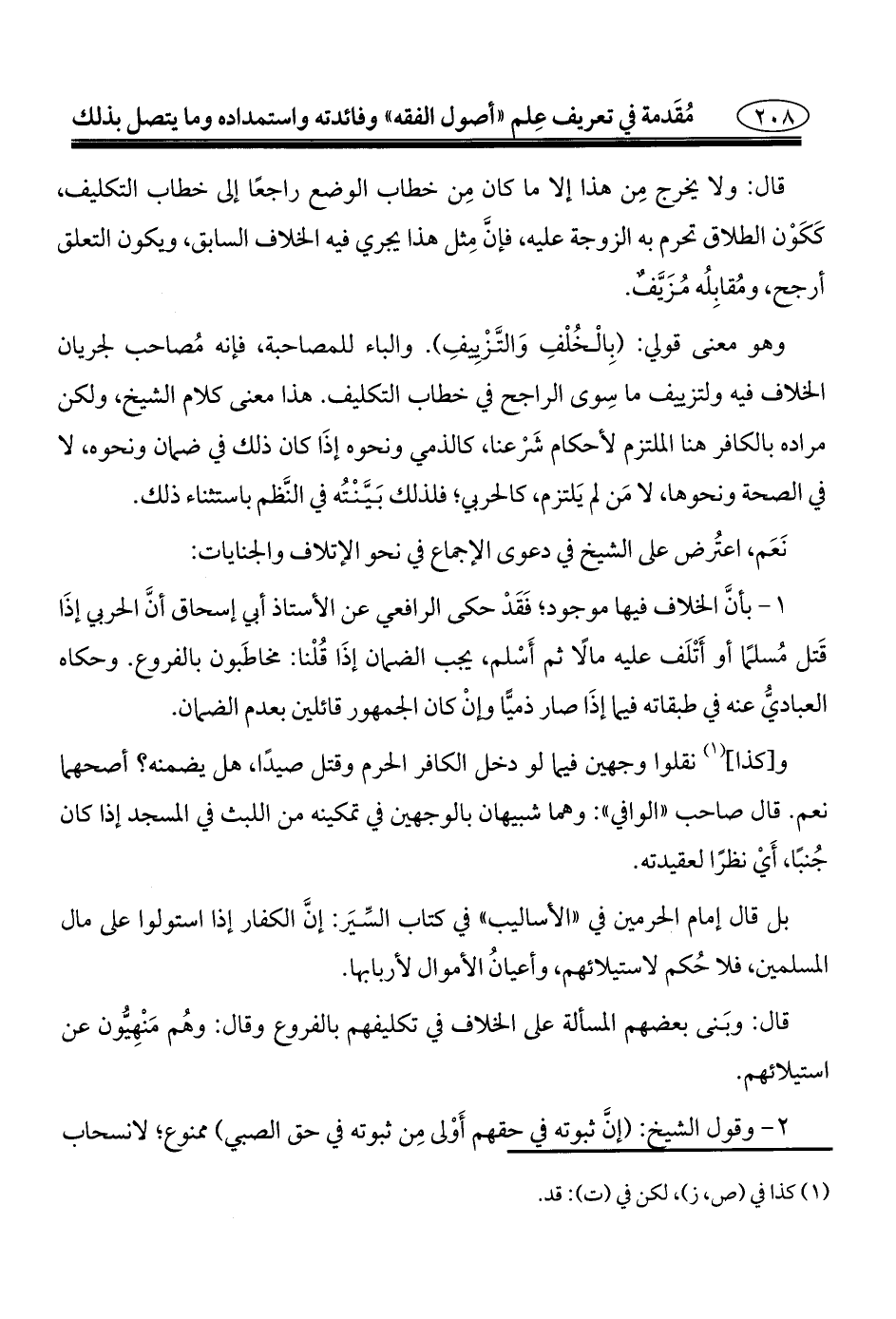 وهو معنى قولي: (بِالْخُلْفِ وَالتَّزْيِيفِ). والباء للمصاحبة، فإنه مُصاحب لجريان الخلاف فيه ولتزييف ما سِوى الراجح في خطاب التكليف. هذا معنى كلام الشيخ، ولكن مراده بالكافر هنا الملتزم لأحكام شَرْعنا، كالذمي ونحوه إذَا كان ذلك في ضمان ونحوه، لا في الصحة ونحوها، لا مَن لم يَلتزم، كالحربي؛ فلذلك بَيَّنْتُه في النَّظم باستثناء ذلك.