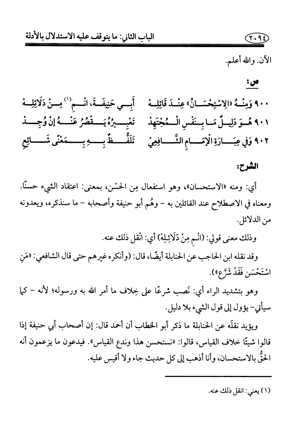 ٩٠٠ - وَمنْهُ "الِاسْتِحْسَانُ" عِنْدَ قَائِلِهْ ... أَبِي حَنِيفَةَ، انْمِ (¬١) مِنْ دَلَائِلِهْ