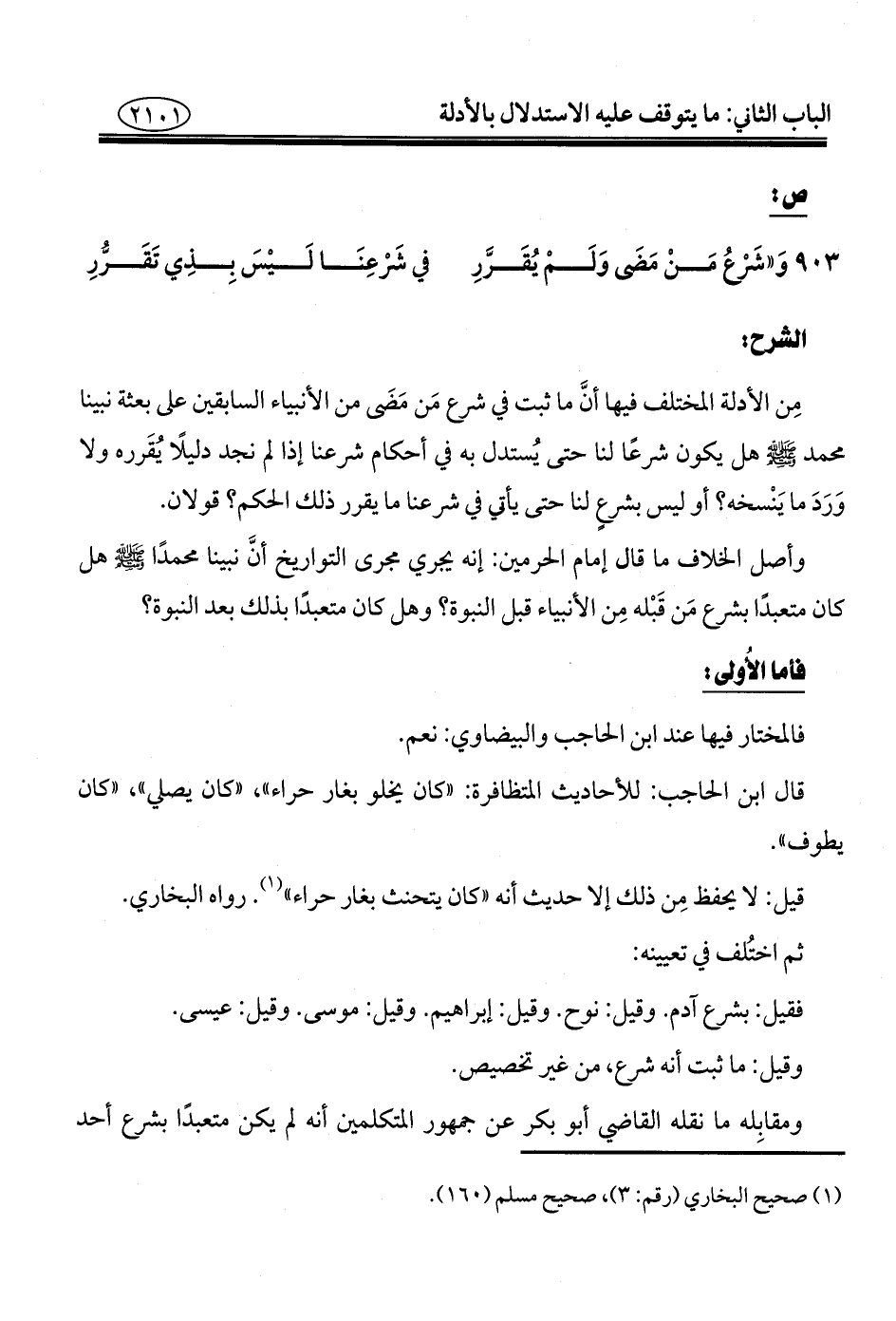 ٩٠٣ - وَ"شَرْعُ مَنْ مَضَى وَلَمْ يُقَرَّرِ ... في شَرْعِنَا لَيْسَ بِذِي تَقَرُّرِ