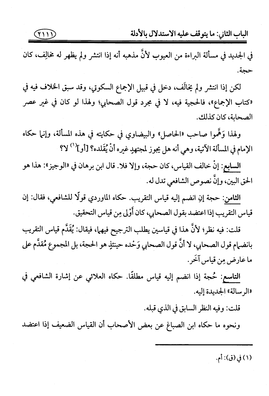 قلت: فيه نظر؛ لأنَّ هذا في قياسين يطلب الترجيح فيهما، فيقال: يُقَدَّم قياس التقريب بانضمام قول الصحابي، لا أنَّ قول الصحابي وَحْده حينئذٍ هو الحجة، بل المجموع مُقدَّم على ما عارض مِن قياس آخَر.