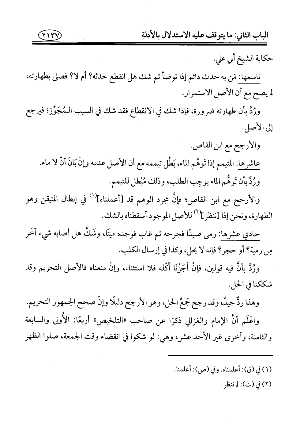 تاسعها: مَن به حدث دائم إذا توضأ ثم شك هل انقطع حدثه؟ أم لا؟ فصلى بطهارته، لم يصح مع أن الأصل الاستمرار.