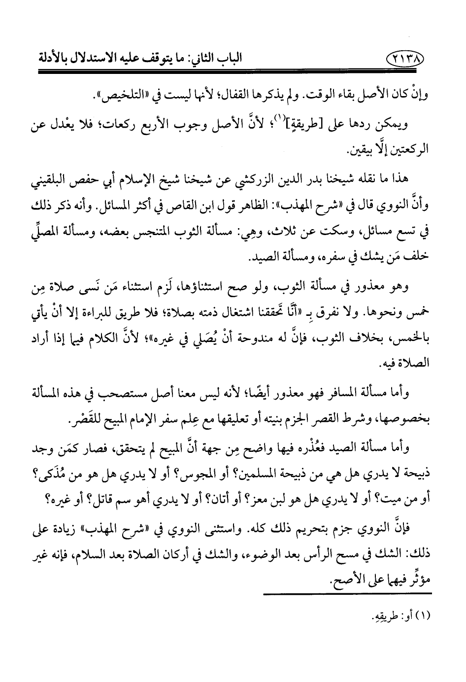 هذا ما نقله شيخنا بدر الدين الزركشي عن شيخنا شيخ الإسلام أبي حفص البلقيني وأنَ النووي قال في "شرح المهذب": الظاهر قول ابن القاص في أكثر المسائل. وأنه ذكر ذلك في تسع مسائل، وسكت عن ثلاث، وهِي: مسألة الثوب المتنجس بعضه، ومسألة المصلِّي خلف مَن يشك في سفره، ومسألة الصيد.