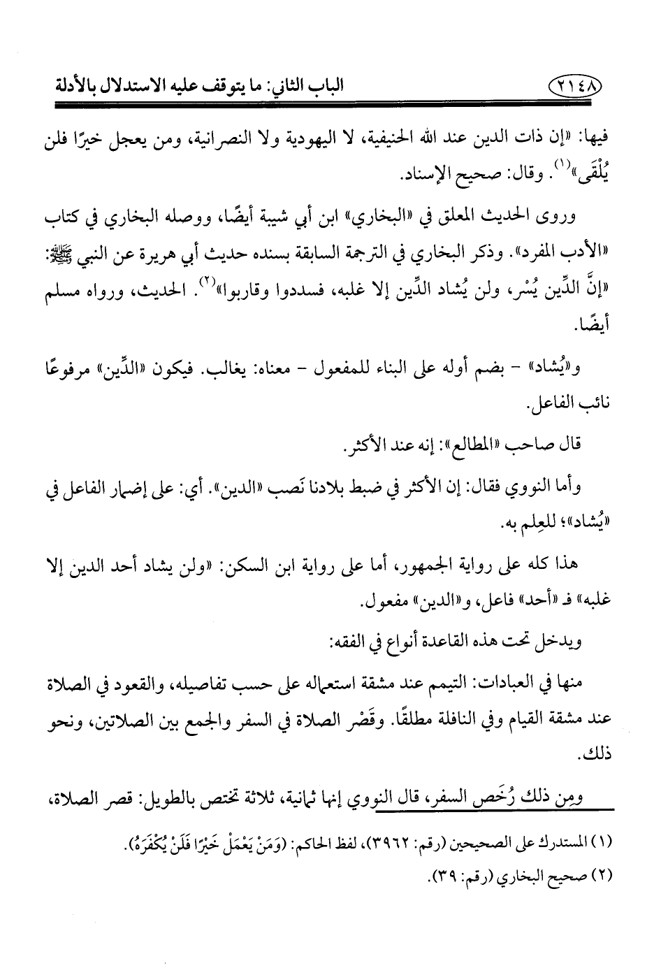 وأما النووي فقال: إن الأكثر في ضبط بلادنا نَصب "الدين". أي: على إضمار الفاعل في "يُشاد"، للعِلم به.