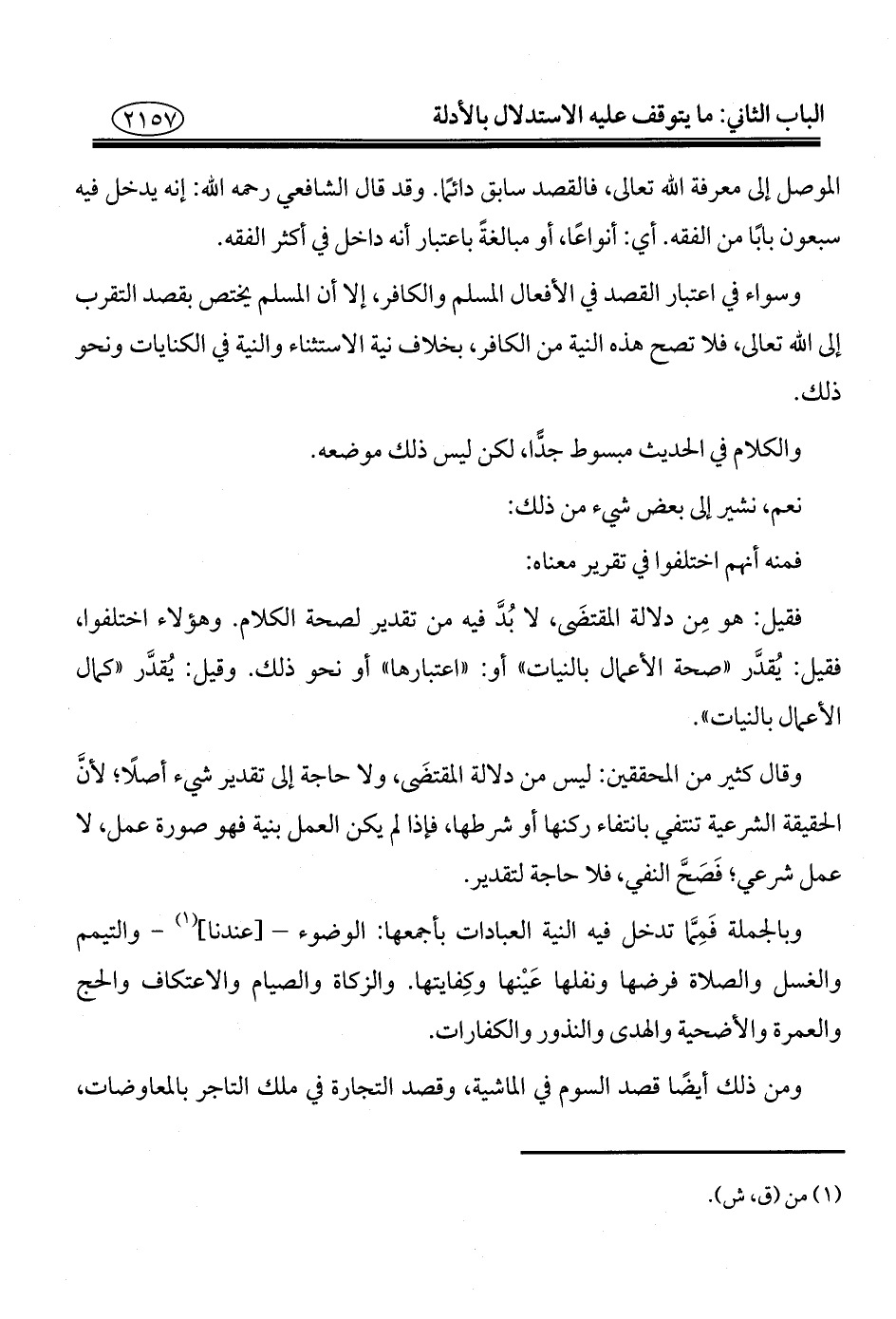 الموصل إلى معرفة الله تعالى، فالقصد سابق دائمًا. وقد قال الشافعي رحمه الله: إنه يدخل فيه سبعون بابًا من الفقه. أي: أنواعًا، أو مبالغةً باعتبار أنه داخل في أكثر الفقه.