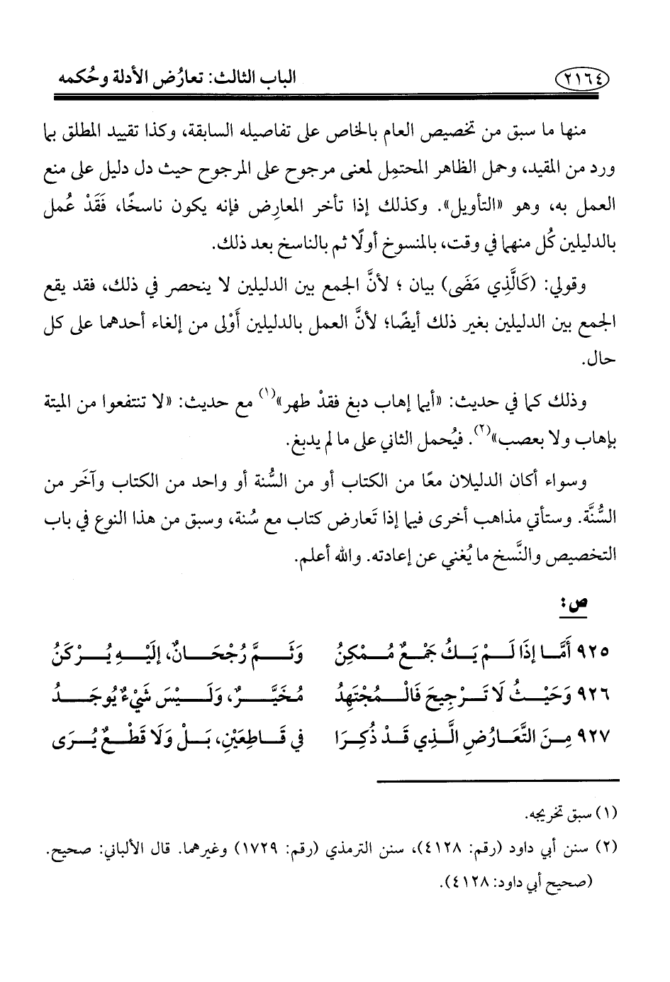 ٩٢٧ - مِنَ التَّعَارُضِ الَّذِي قَدْ ذُكِرَا ... في قَاطِعَيْنِ، بَلْ وَلَا قَطْعٌ يُرَى