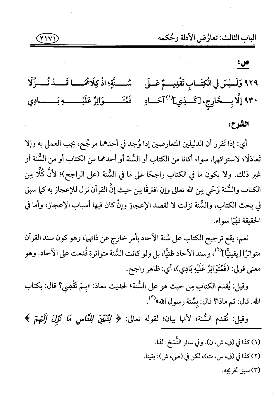 ٩٢٩ - وَلَيْسَ في الْكِتَابِ تَقْدِيمٌ عَلَى ... سنَّةٍ؛ اذْ كِلَاهُمَا قَدْ نُزِّلَا