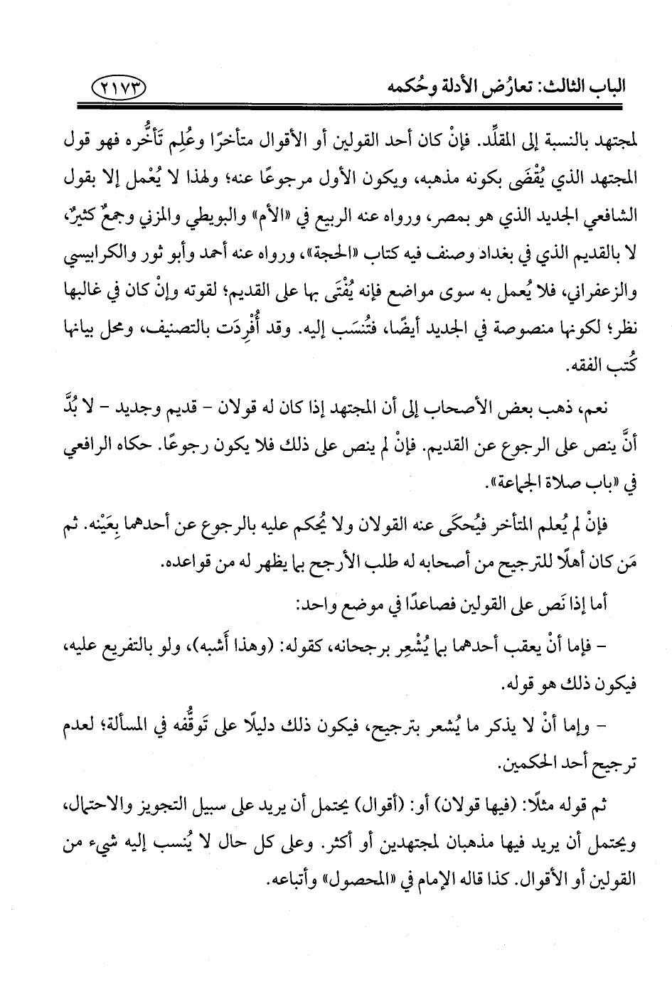 - فإما أنْ يعقب أحدهما بما يُشْعِر برجحانه، كقوله: (وهذا أَشبه)، ولو بالتفريع عليه، فيكون ذلك هو قوله.