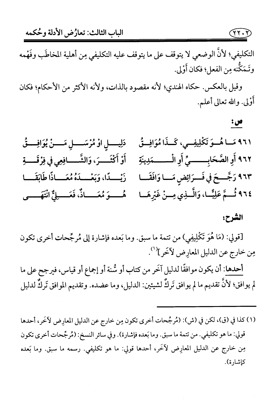 (¬١) كذا في (ق)، لكن في (ش): (مُرجِّحات أخرى تكون مِن خارج عن الدليل المعارِض لآخَر، أحدها قولي: ما هو تكليفي. من تتمة ما سبق. وما بَعده فإشارة). وفي سائر النسخ: (مُرجِّحات أخرى تكون مِن خارج عن الدليل المعارِض لآخَر، أحدها قولي: ما هو تكليفي. رسمه ما سبق. وما بَعده كإشارة).