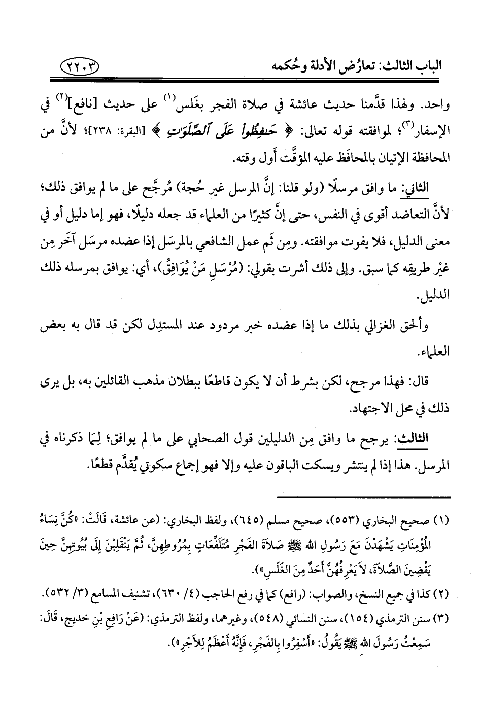 (¬٣) سنن الترمذي (١٥٤)، سنن النسائي (٥٤٨)، وغيرهما, ولفظ الترمذي: (عَنْ رَافِعِ بْنِ خديج، قَالَ: سَمِعْتُ رَسُولَ اللهِ - صلى الله عليه وسلم - يَقُولُ: "أَسْفِرُوا بِالفَجْرِ، فَإِنَّهُ أَعْظَمُ لِلأَجْرِ").