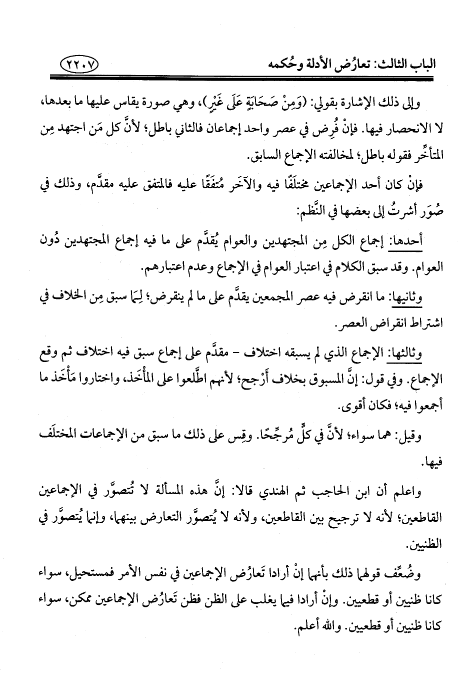 وضُعِّف قولهما ذلك بأنهما إنْ أرادا تَعارُض الإجماعين في نفس الأمر فمستحيل، سواء كانا ظنيين أو قطعيين. وإنْ أرادا فيما يغلب على الظن فظن تَعارُض الإجماعين ممكن، سواء كانا ظنيين أو قطعيين. والله أعلم.