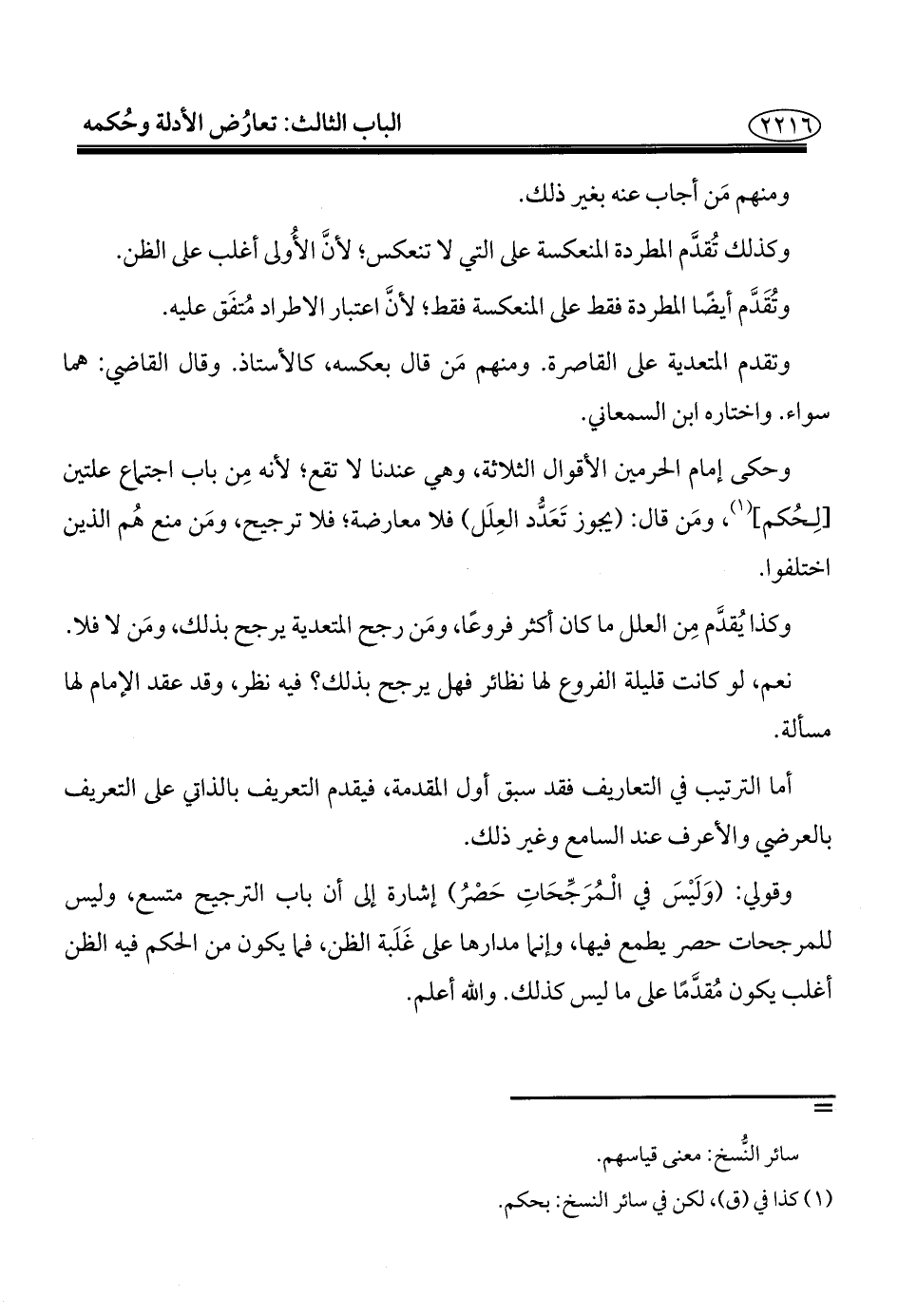 وكذا يُقدَّم مِن العلل ما كان أكثر فروعًا، ومَن رجح المتعدية يرجح بذلك، ومَن لا فلا.
