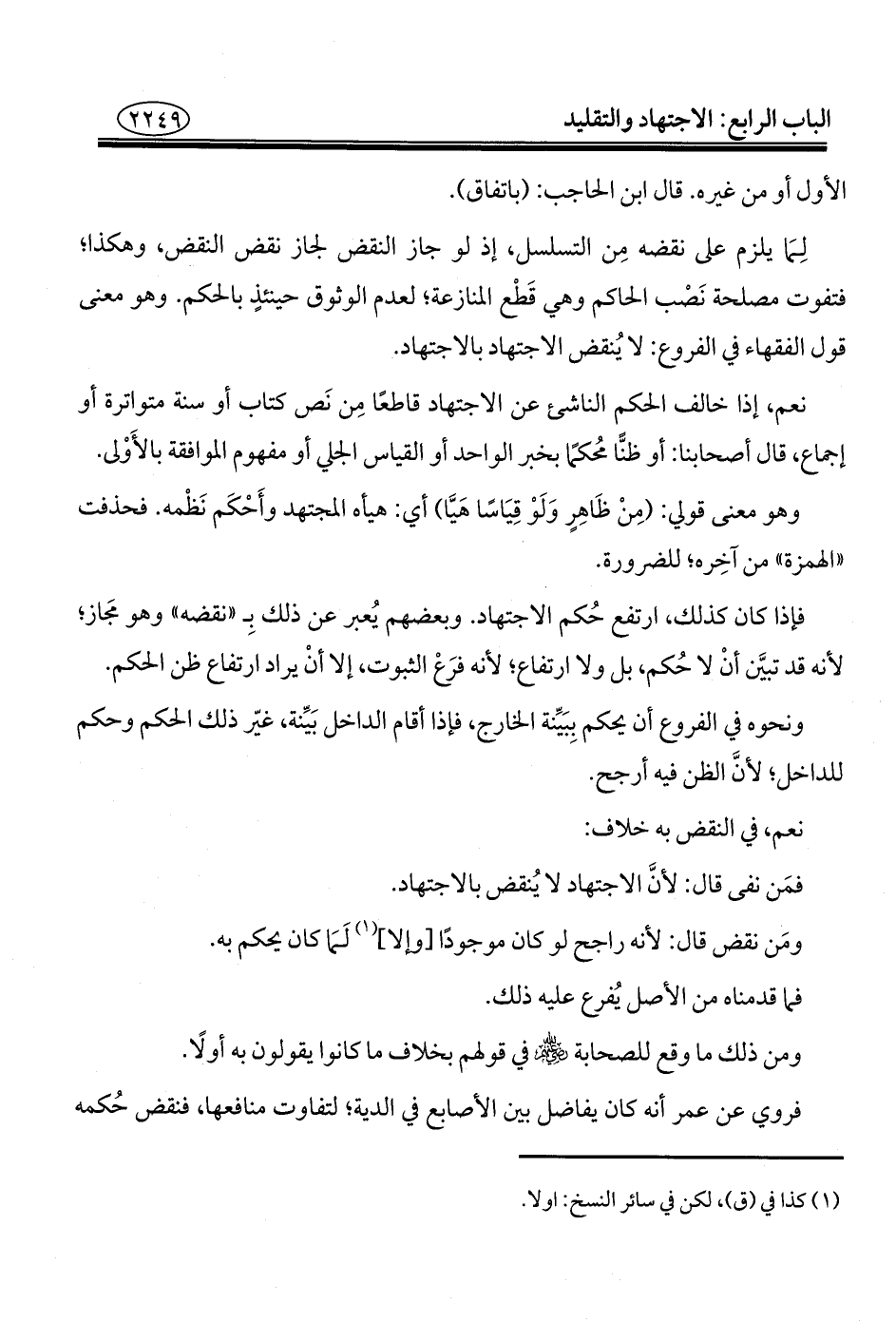 فإذا كان كذلك، ارتفع حُكم الاجتهاد. وبعضهم يُعبر عن ذلك بِ "نقضه" وهو مجَاز؛ لأنه قد تبيَّن أنْ لا حُكم، بل ولا ارتفاع؛ لأنه فرَعْ الثبوت، إلا أنْ يراد ارتفاع ظن الحكم.