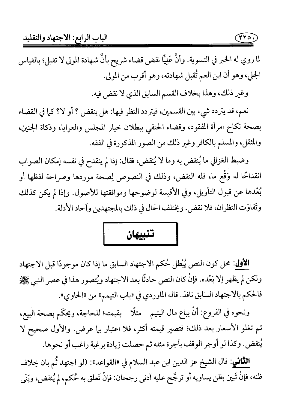 الثاني: قال الشيخ عز الدين ابن عبد السلام في "القواعد": (لو اجتهد ثُم بان خِلاف ظنه، فإنْ تَبين بظن يساويه أو ترجَّح عليه أدنى رجحان: فإنْ تَعلق به حُكم، لم يُنقض، وبَنَى