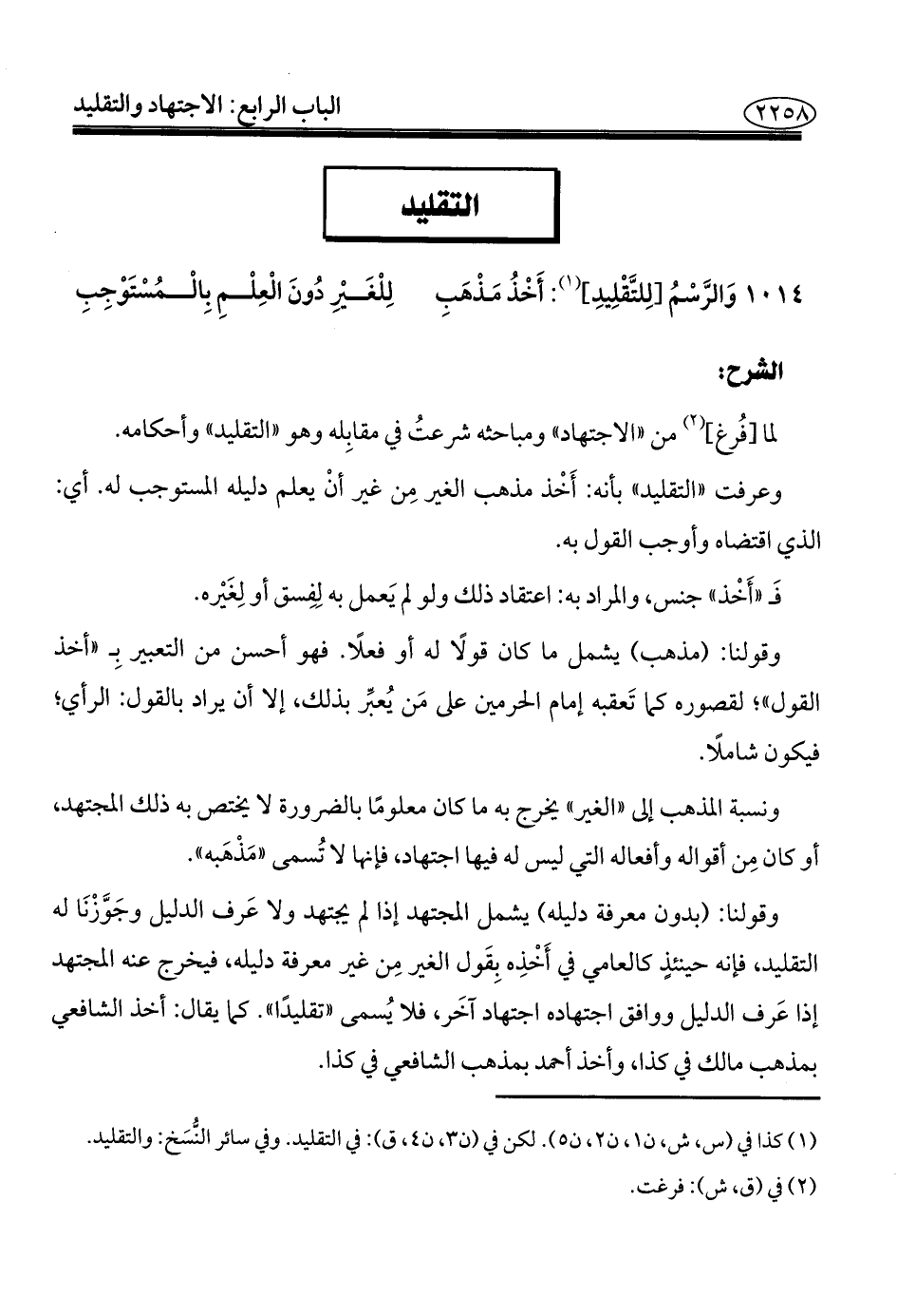 (¬١) كذا في (س، ش، ن ١، ن ٢، ن ٥). لكن في (ن ٣، ن ٤، ق): في التقليد. وفي سائر النُّسَخ: والتقليد.
