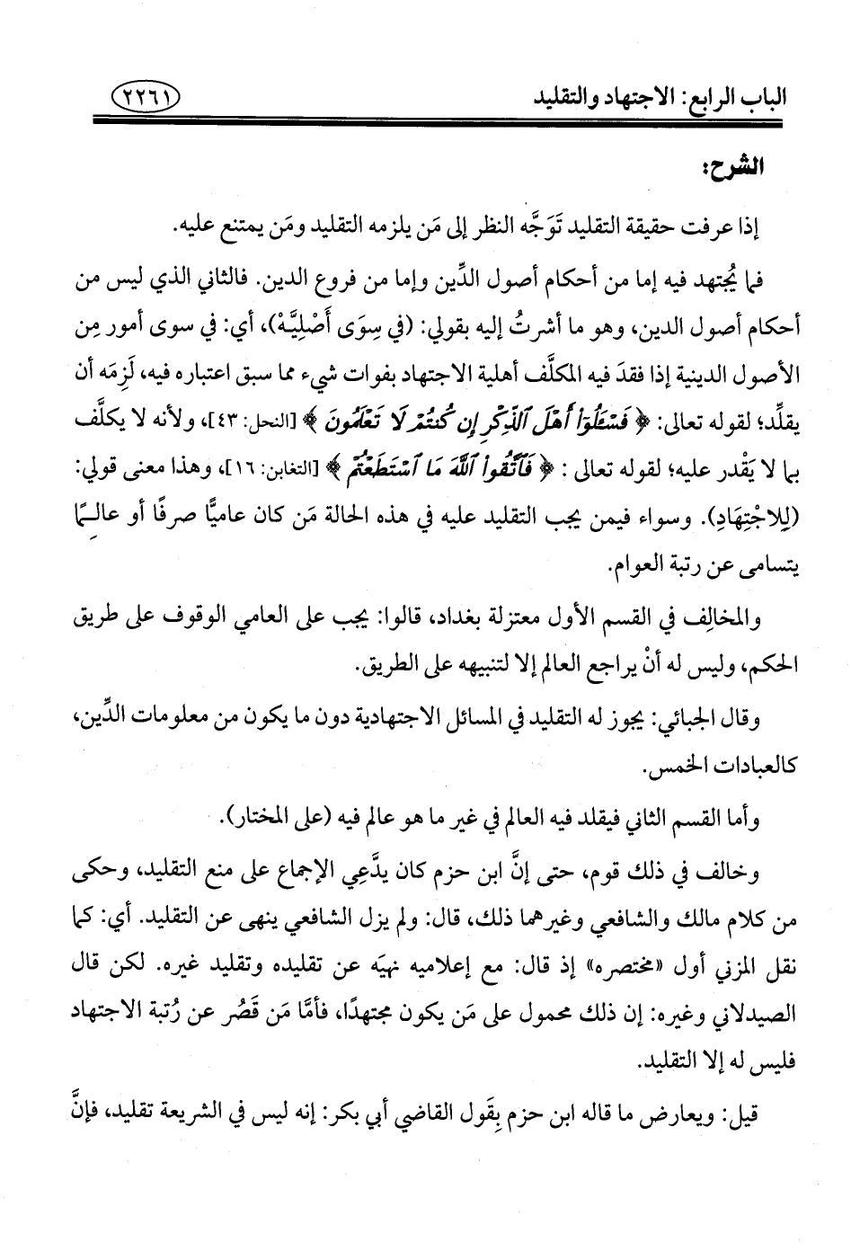 وخالف في ذلك قوم، حتى إنَّ ابن حزم كان يدَّعِي الإجماع على منع التقليد، وحكى من كلام مالك والشافعي وغيرهما ذلك، قال: ولم يزل الشافعي ينهى عن التقليد. أي: كما نقل المزني أول "مختصره" إذ قال: مع إعلاميه نهيَه عن تقليده وتقليد غيره. لكن قال الصيدلاني وغيره: إن ذلك محمول على مَن يكون مجتهدًا، فأمَّا مَن قَصُر عن رُتبة الاجتهاد فليس له إلا التقليد.