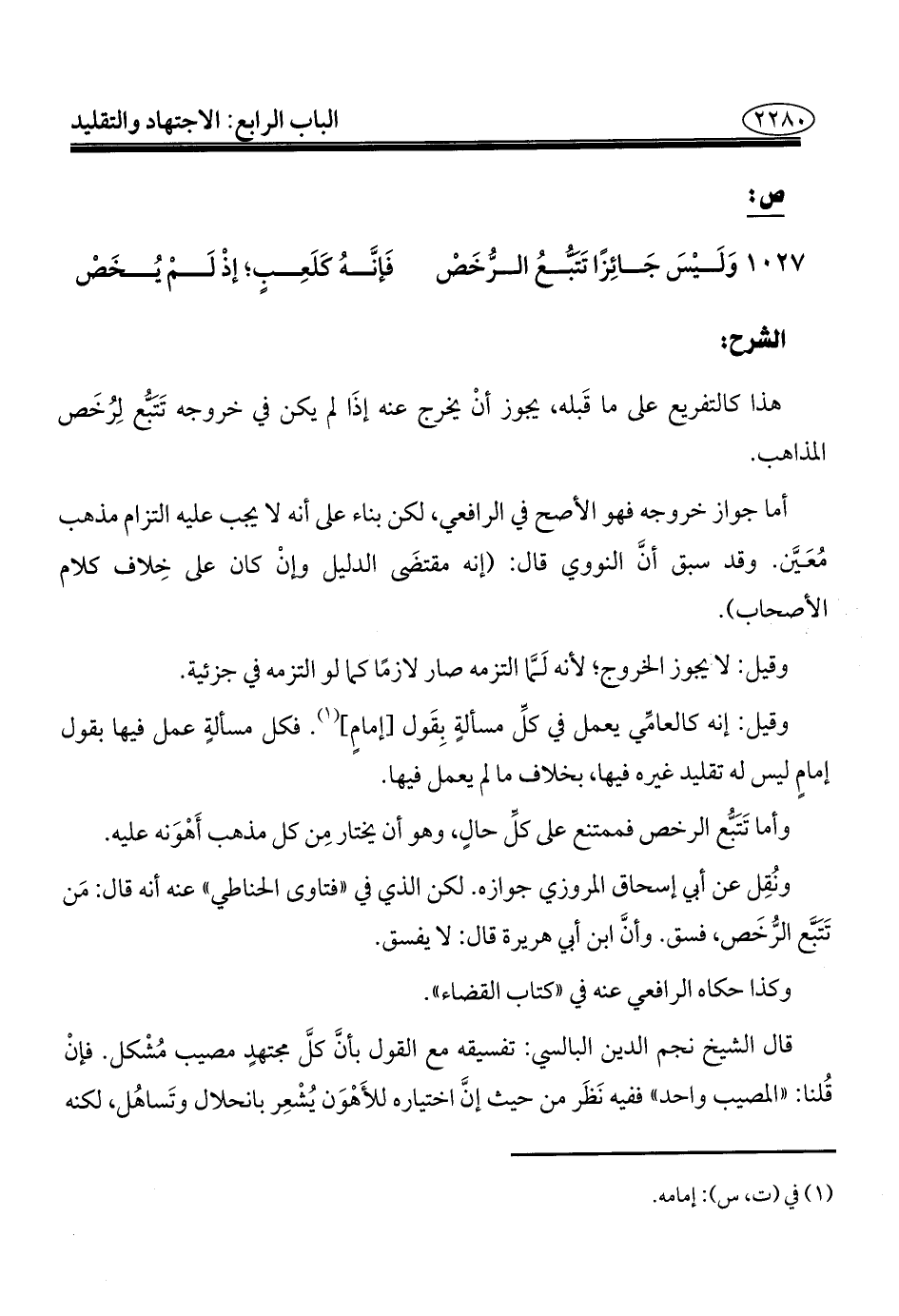 ١٠٢٧ - وَلَيْسَ جَائِزًا تَتبُّعُ الرُّخَصْ ... فَإنَّهُ كَلَعِبٍ؛ إذْ لَمْ يُخَصْ