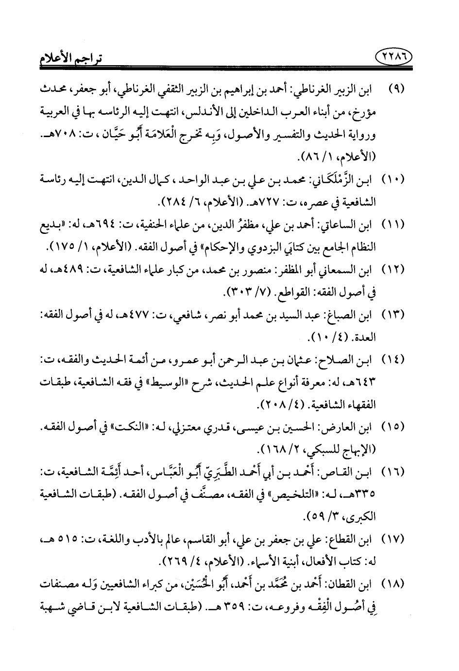 ١١ - ابن الساعاتي: أحمد بن علي، مظفرُ الدين، من علماء الحنفية، ت: ٦٩٤ هـ، له: "بديع النظام الجامع بين كتابَي البزدوي والإحكام" في أصول الفقه. (الأعلام، ١/ ١٧٥).