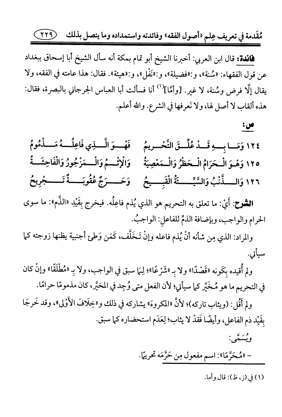 ١٢٥ - وَهْوَ الْحَرَامُ الْحَظْرُ وَالْمَعْصِيَةُ ... وَالْإثْمُ وَالْمَزْجُورُ وَالْفَاحِشَةُ