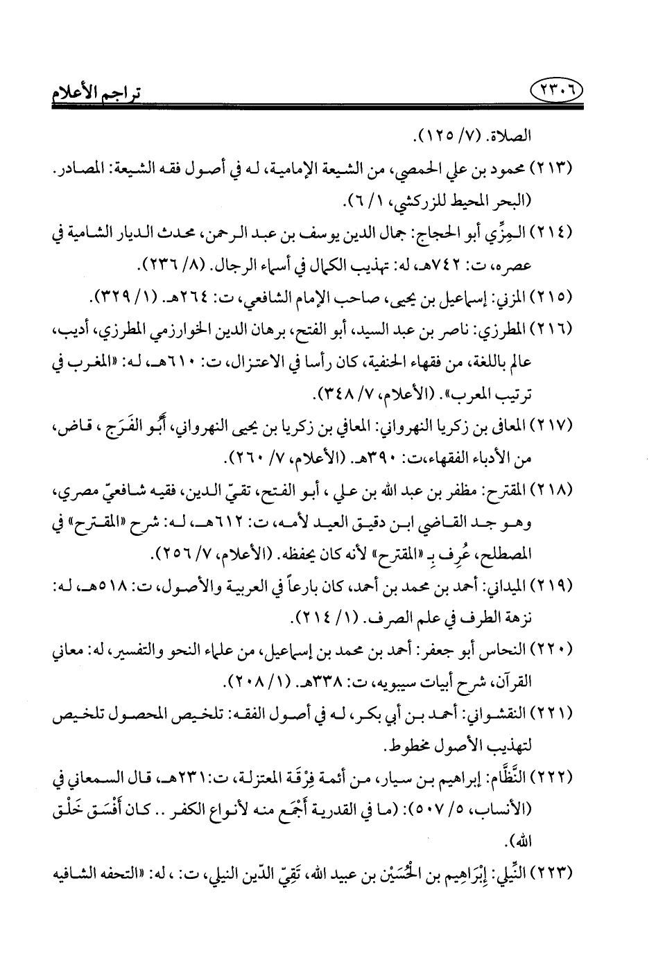 ٢٢١ - النقشواني: أحمد بن أبي بكر، له في أصول الفقه: تلخيص المحصول تلخيص لتهذيب الأصول مخطوط.