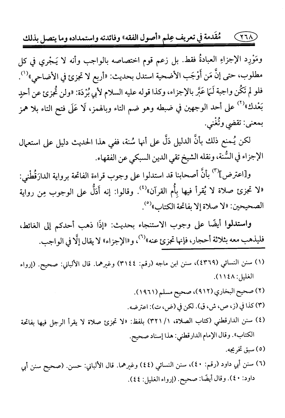 (¬٦) سنن أبي داود (رقم: ٤٠)، سنن النسائي (٤٤) وغيرهما. قال الألباني: حسن. (صحيح سنن أبي داود: ٤٠). وقال أيضًا: صحيح. (إرواء الغليل: ٤٤).