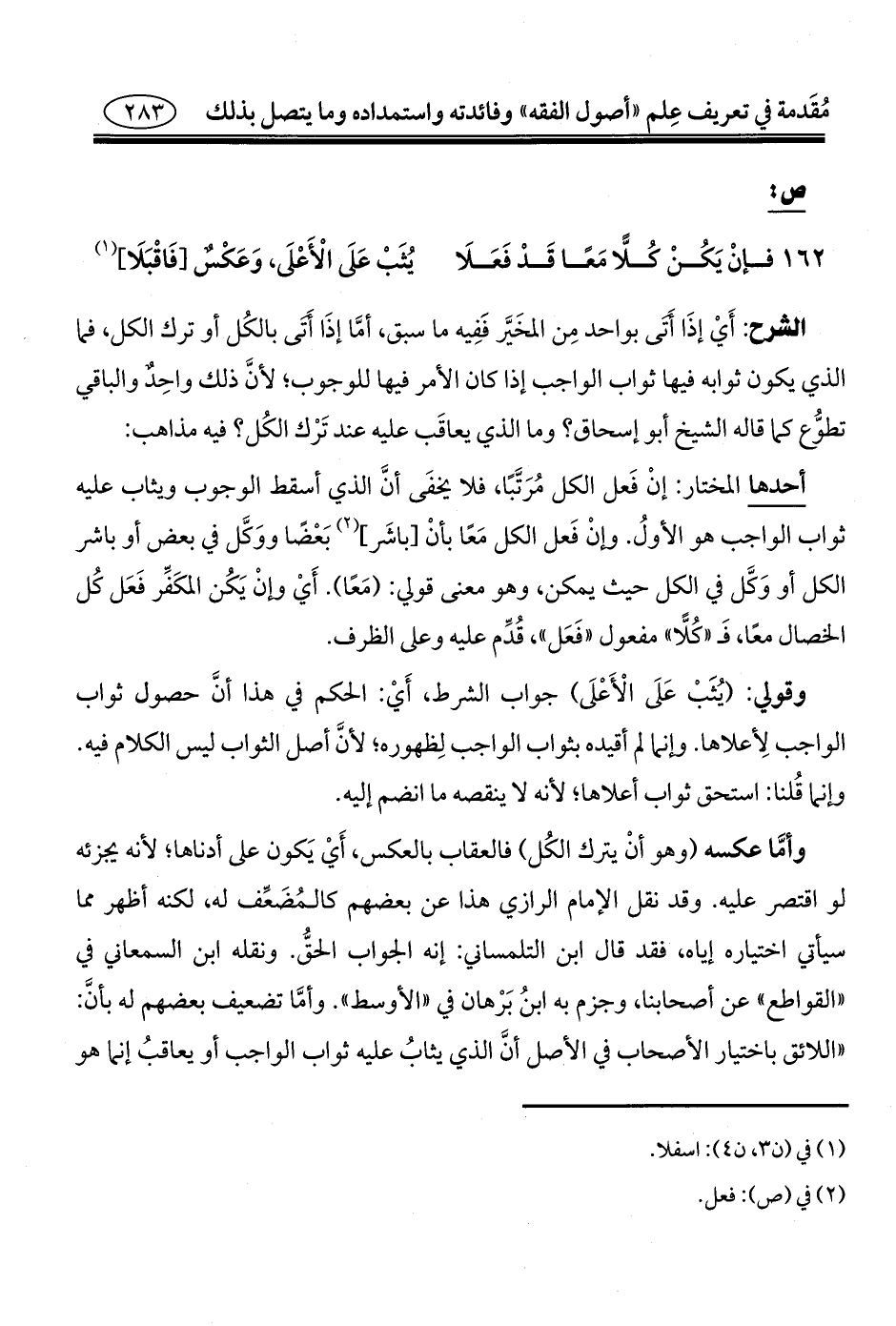 ١٦٢ - فإنْ يَكُنْ كُلًّا مَعًا قَدْ فَعَلَا ... يُثَبْ عَلَى الْأَعْلَى، وَعَكْسٌ [فَاقْبَلَا] (¬١)